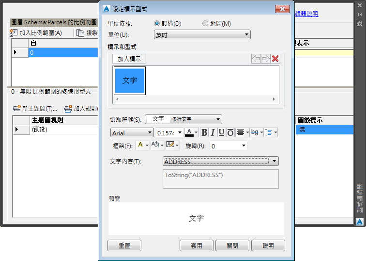 在此練習中,您將使用「型式編輯器」將標示加入至宗地。