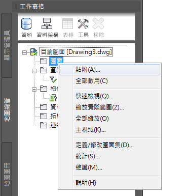 從「工作窗格」的「地圖總管」頁籤貼附圖面。