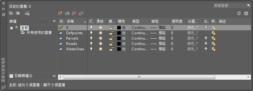 DWGMap.dwg 圖面具有多個圖面圖層。