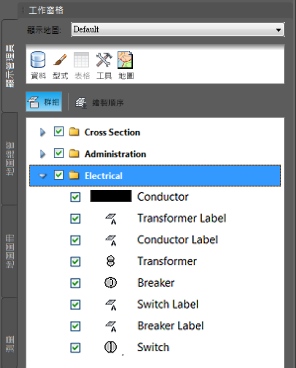 按照物件所代表的真實世界圖徵 (例如,道路、宗地、電纜或水管) 來組織圖面中的物件。