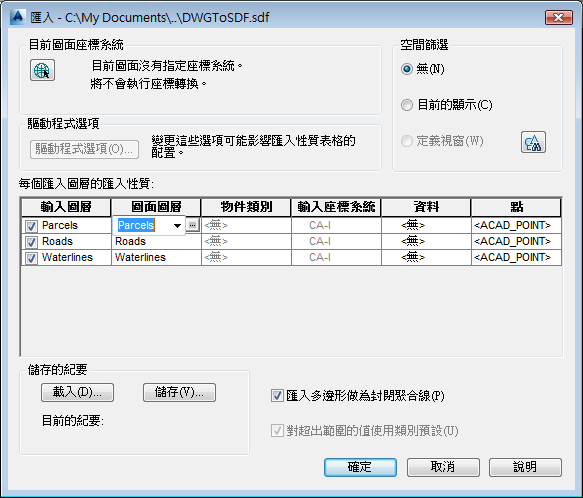 匯入資料時,您可以在地圖中為其建立結構。將資料指定給圖層或物件類別。將屬性資料加入至物件資料表。指定座標系統。指定點以點、文字或圖塊的形式傳入。