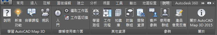 - 說明:瀏覽或搜尋包括 AutoCAD Map 3D 所有方面的概念和程序。