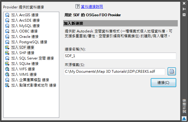 連接至 SDF 檔案的步驟
