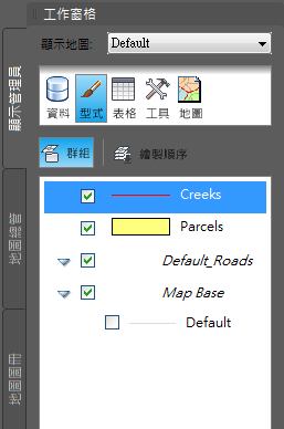 「顯示管理員」頁籤展示目前地圖中的圖層。