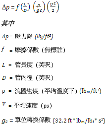 Re > 4000,因此摩擦係數 (F) = (1 / (2 * LOG10 (3.7 * E) ) ) ^ 2 = 0.0162875