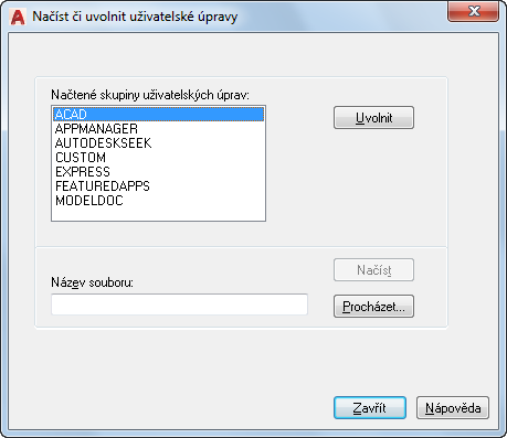 Zobrazí dialog Vybrat soubor uživatelských úprav (standardní dialog pro výběr souboru), kde můžete vybrat soubor nabídky, který chcete načíst.