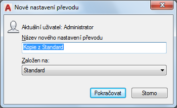 Zadejte název nového nastavení převodu.