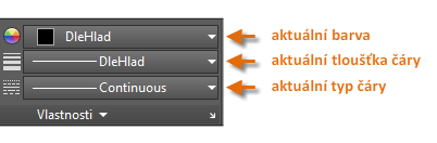 Vlastnosti, například barvu a typ čáry, můžete přiřadit k jednotlivým objektům nebo je nastavit jako výchozí vlastnosti přiřazené k hladinám.