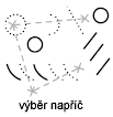 Vybere všechny objekty protínající výběrovou lomenou čáru. Metoda Napříč je podobná metodě KPolygon, s tím rozdílem, že objekt napříč není uzavřený a může sám sebe protínat. Objekt Napříč není ovlivněn systémovou proměnnou PICKADD.