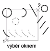 Vybere všechny objekty, které se nacházejí zcela uvnitř obdélníku definovaného pomocí dvou bodů. Při zadání rohů zleva doprava se vytvoří výběr z okna. (Po zadání rohů zprava doleva se vytvoří výběr křížením.)