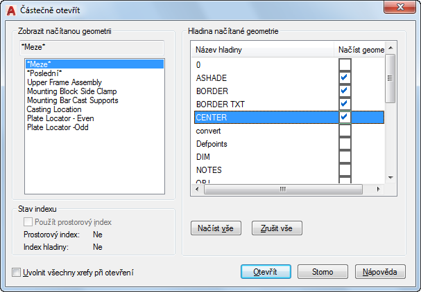 Pokud pracujete s velkými výkresovými soubory, můžete tak vybrat pouze minimální množství geometrie, které potřebujete načíst při otevření výkresu.