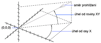 Určí nový směr pohledu pomocí dvou úhlů.