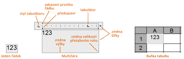 V závislosti na typu textového objektu, se kterým pracujete, může editor vypadat odlišně.