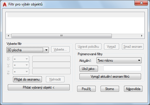 Přidá jeden vybraný objekt z výkresu do seznamu filtru.