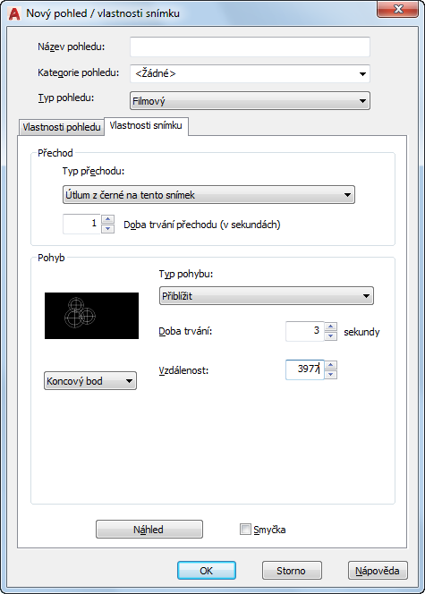 Definuje typ přechodu, který má být použit při přehrávání pohledu.