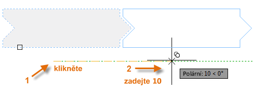 Dále posunete kurzor doprava, přičemž díky úhlu polárního trasování zachováte horizontální směr, a potom zadáte hodnotu 10 pro vzdálenost. Stiskněte klávesu Enter nebo mezerník podruhé a ukončete příkaz.