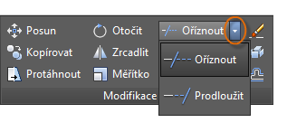 Oblíbenou technikou je použití příkazu EKVID v kombinaci s příkazy OŘEŽ a PRODLUŽ. V příkazovém okně můžete zadat alias OR pro příkaz OŘEŽ nebo alias PD pro příkaz PRODLUŽ. Oříznutí a prodloužení patří mezi nejčastěji používané operace.