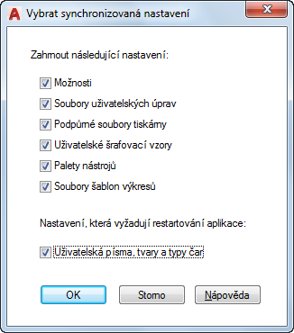 - Synchronizuje uživatelské profily a všechna ostatní nastavení zadávaná v dialogu Možnosti.