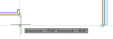 Kurzor se přichytí k úhlům a přírůstkům definovaným v nastavení polárního trasování.