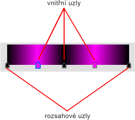 Kliknutím kamkoli na ukázku gradientu můžete přidat uzly. Přetažením uzlu mimo oblast hranice ukázky uzel odstraníte.