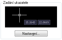 Když je zapnuto zadání pomocí ukazatele (kurzoru) a je spuštěn příkaz, zobrazí se souřadnice umístění nitkových křížů v polích pro zadání popisku poblíž kurzoru. Místo příkazového řádku můžete pro vložení souřadnic použít popisek.