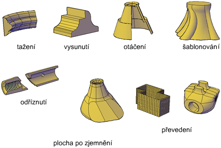 Při vytahování, tažení, šablonování a rotaci křivek můžete vytvářet jak tělesa, tak povrchy.