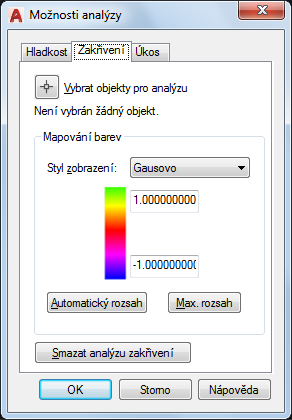 Vypočítá maximální a minimální rozsahy všech objektů vybraných k analýze zakřivení. (systémové proměnné VSACURVATUREHIGH a VSACURVATURELOW)