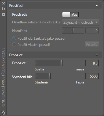 Pomocí palety Rendrovací prostředí a expozice nastavíte globální osvětlení scény.