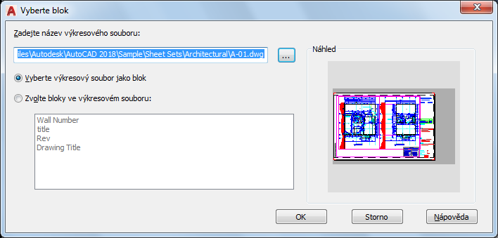 Používá jako definici bloku celý zadaný výkresový soubor nebo soubor šablony výkresu.