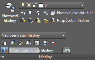 Funkce utlumení pro uzamknuté hladiny umožňuje snížit vizuální složitost výkresu při zachování vizuální reference a možností uchopení objektů.