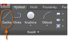 Úsečka je základní a nejběžnější objekt ve výkresech aplikace AutoCAD. Chcete-li nakreslit úsečku, klikněte na nástroj Úsečka.