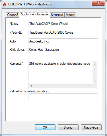 Určuje titulek, pomocí kterého můžete tento výkres vyhledávat. Titulek může být odlišný od názvu souboru.