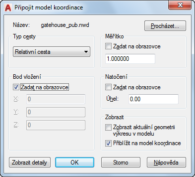 Zobrazí cestu, která je uložena s výkresem při připojení modelu koordinace. Cesta závisí na nastavení Typu cesty.