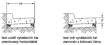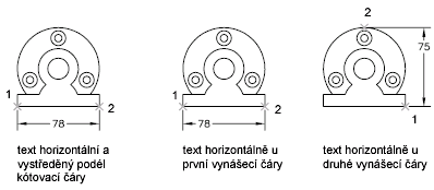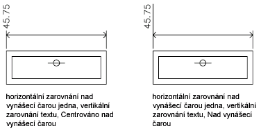 Zarovnávání textu s kótovací čarou nebo zachování horizontálního zarovnaní můžete vybrat bez ohledu na to, zda je text uvnitř nebo vně vynášecích čar. Následující příklady zobrazují dvě kombinace těchto možností.