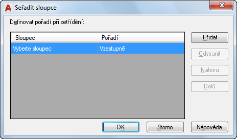 Přidá novou položku kritérií třídění do seznamu Sloupec.