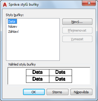 Zobrazí všechny styly buněk v rámci aktuálního stylu tabulky a umožní vytvořit nebo odstranit styl buňky.