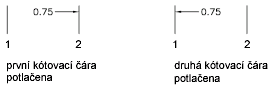 Potlačí zobrazení kótovacích čar. Vynášecí čára 1 potlačí první vynášecí čáru; vynášecí čára 2 potlačí druhou vynášecí čáru. (systémové proměnné DIMSD1 a DIMSD2)