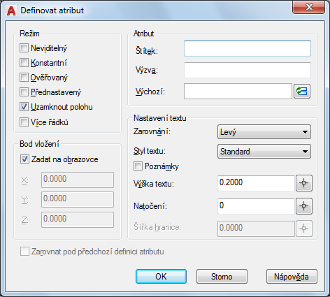 Určuje, že je atribut popisný. Je-li blok poznámka, bude se atribut shodovat s orientací bloku.