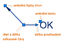 Nabídky uzlů se zobrazí, když přesunete kurzor nad šipku nebo uzly odkazové čáry. Prostřednictvím těchto nabídek lze přidat segmenty odkazové čáry nebo další odkazy.
