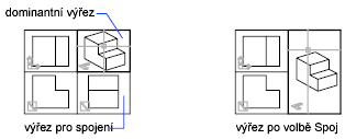 Dva výřezy modelu musí sdílet společnou hranu stejné délky. Výsledný výřez zdědí pohled dominantního výřezu.