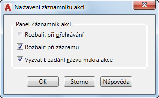 Přizpůsobuje použitá nastavení nástroje Záznamník akcí.