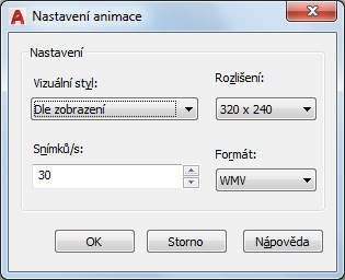 Určuje seznam výstupních formátů pro animaci. Dostupné formáty jsou AVI, MPG, WMV a MOV.