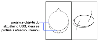 Určuje promítání do půdorysné rovinyXY aktuální systému USS. Příkaz ořízne objekty, které se neprotnou s ořezávací hranou v prostoru 3D.