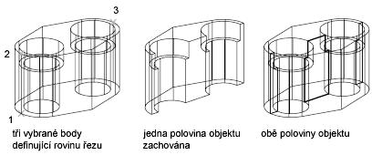 Příkaz ODŘÍZNI použijte k odříznutí 3D tělesa nebo povrchu; je nutné určit rovinu řezu, nebo vybrat povrch.