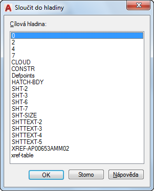 Zobrazí abecední seznam hladin, do kterých můžete sloučit zvolené hladiny nebo objekty.