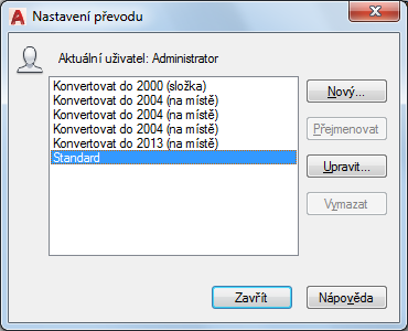 Slouží k vytvoření, přejmenování, úpravě a odstranění nastavení převodu.