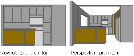Ve výkresu můžete vytvářet realistické vizuální efekty definováním paralelních nebo perspektivních projekcí modelu.
