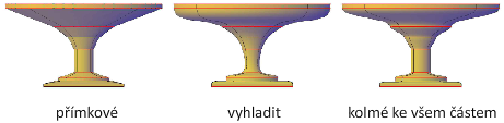 Při vytváření šablonovaného objektu může přizpůsobit jeho tvar určení způsobu, jakým má profily procházet jednotlivými průřezy (například ostrá nebo hladká křivka). Nastavení lze změnit také později na paletě Vlastnosti.