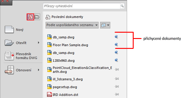 Soubor lze uchovat v seznamu bez ohledu na soubory uložené později, a to kliknutím na ikonu připínáčku vpravo od názvu souboru. Soubor se zobrazuje na posledním místě seznamu, dokud připnutí nezrušíte.