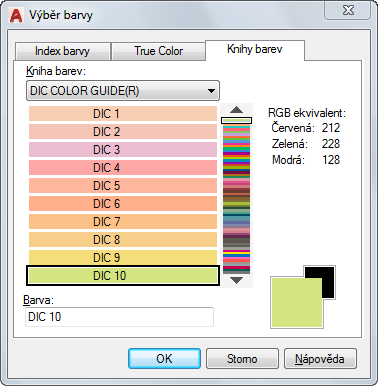 Určuje, která kniha barev bude použita při výběru barev.